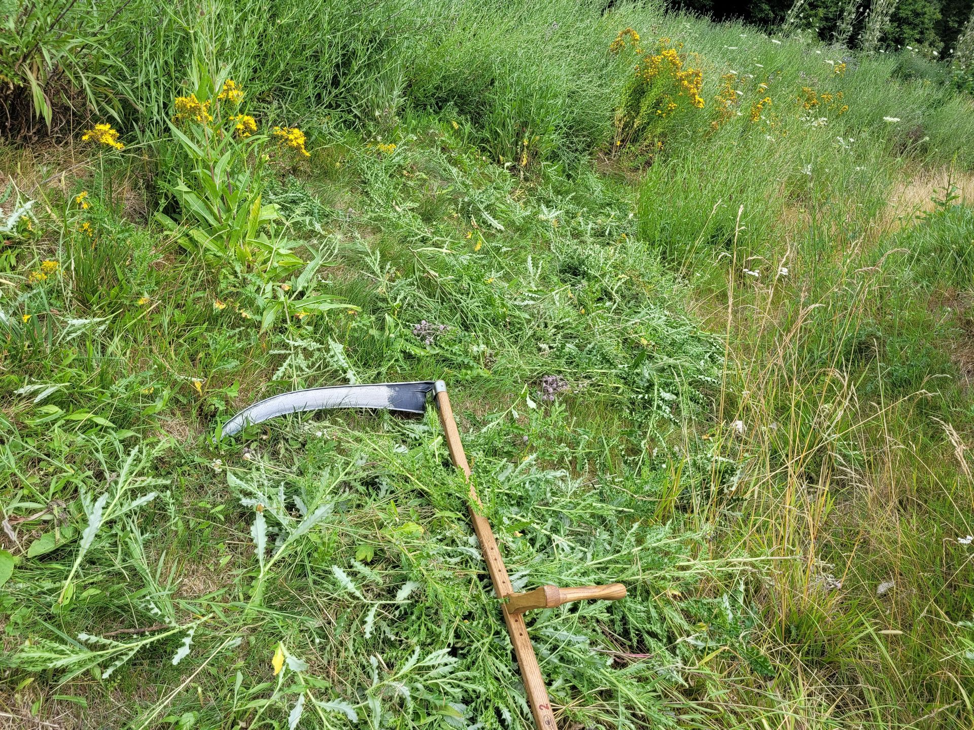 Het zachte geluid van de zingende zeis...