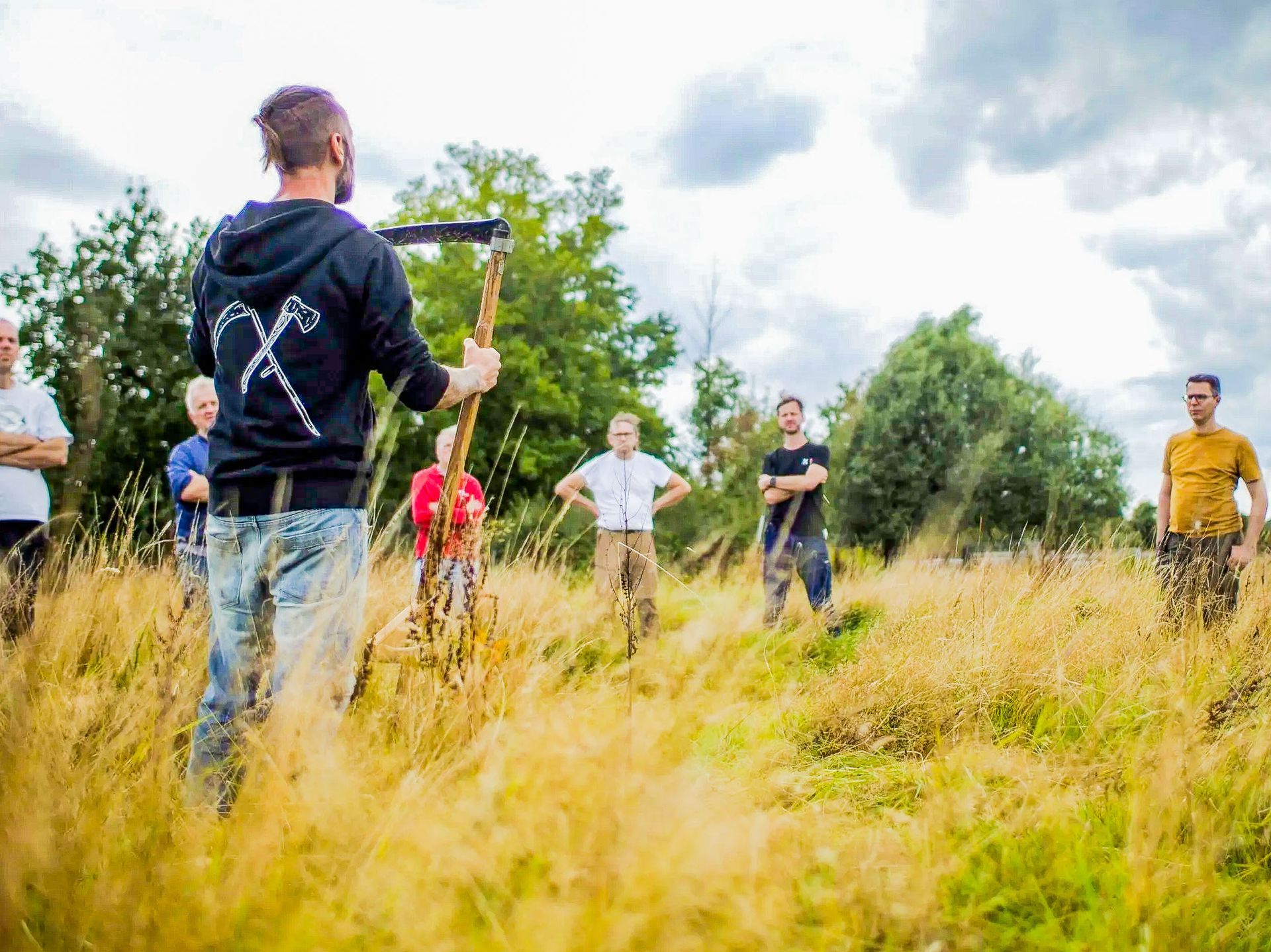 Maaien met de zeis is bewegen binnen een fijne teamgeest en genieten van een gezonde portie buitenbeleving.